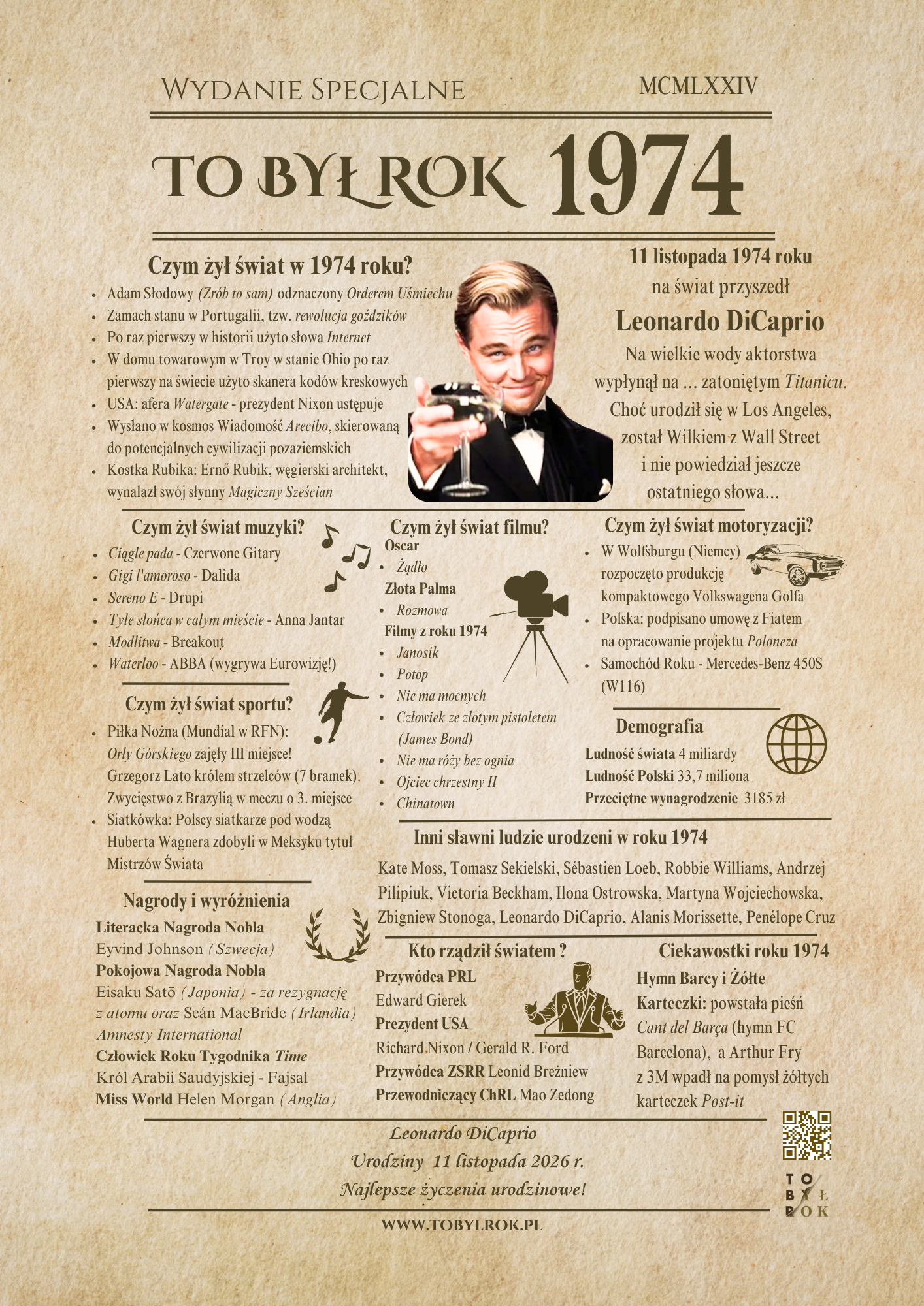 Odkryj unikatową kartę pamiątkową, która łączy najważniejsze fakty historyczne, sportowe i ze świata kultury z Twoją osobistą dedykacją.