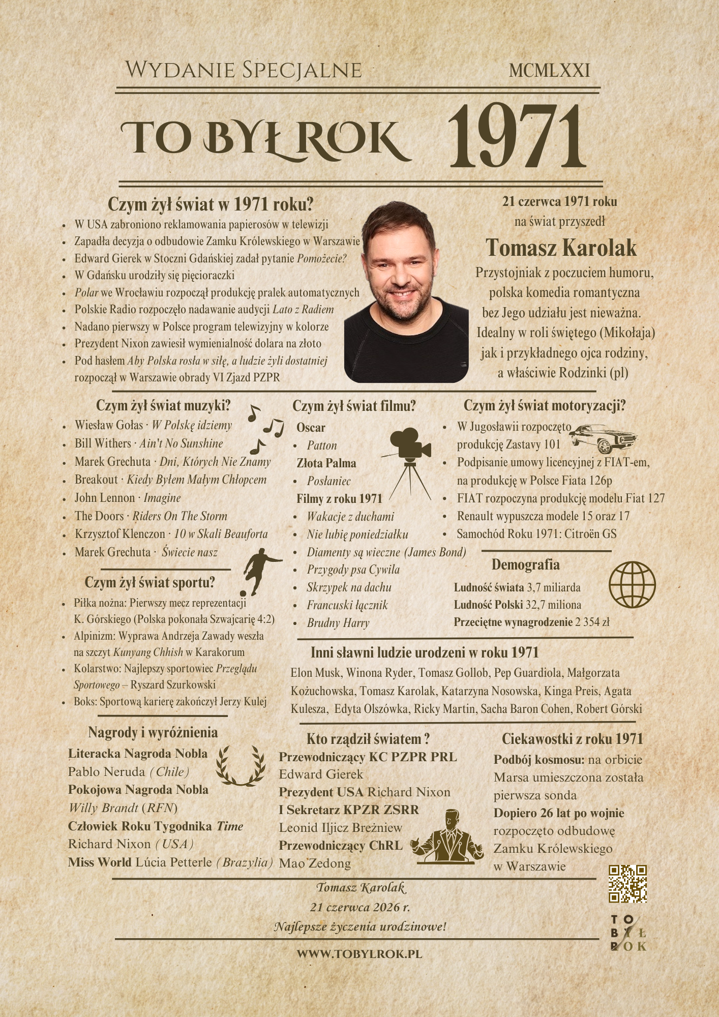 Podaruj bliskim ich własny rok urodzenia. Bo To Był ich Rok!